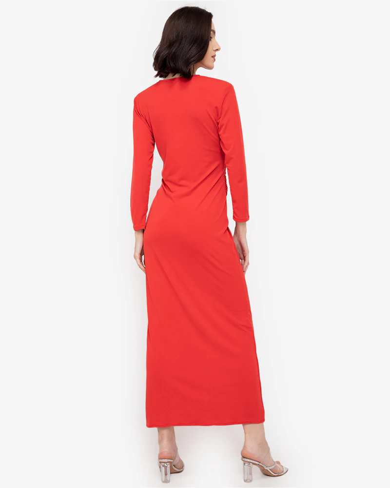 The Benita Jersey Dress is a shirred waist v neck midi. Wear with heels or flat for casual and special events.