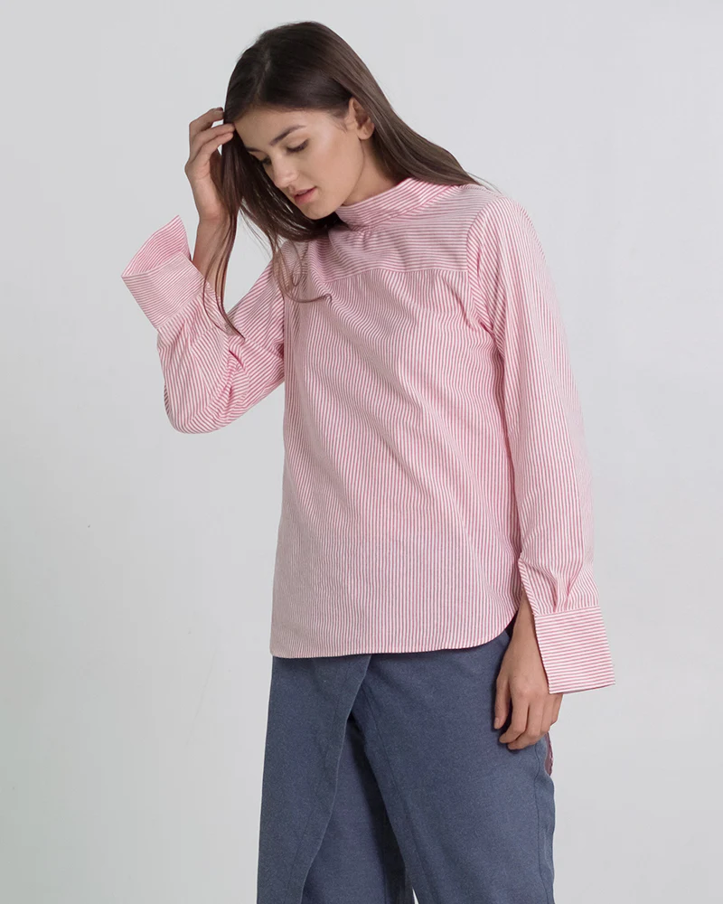 Made of cotton. Felomina top is a timeless piece you can wear from work to weekend. Matched it with jeans or denim culottes and your perfect to go.