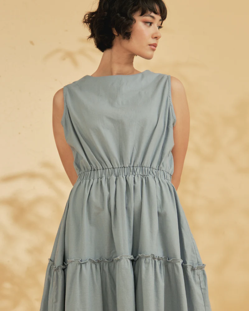 Maya Sleeveless Tiered Cotton Maxi Dress