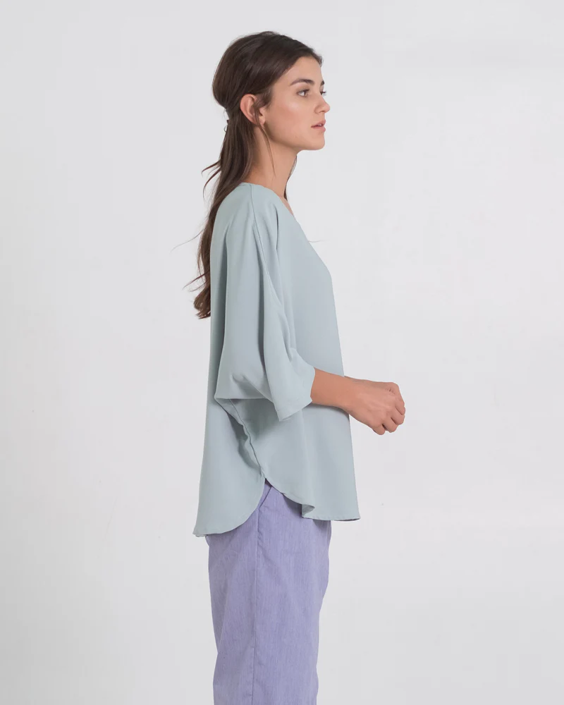 Made of crepe. Palmira top is a basic piece you can wear everyday. Tucked it in underneath an a-line skirt or loose it with a pair of culottes.