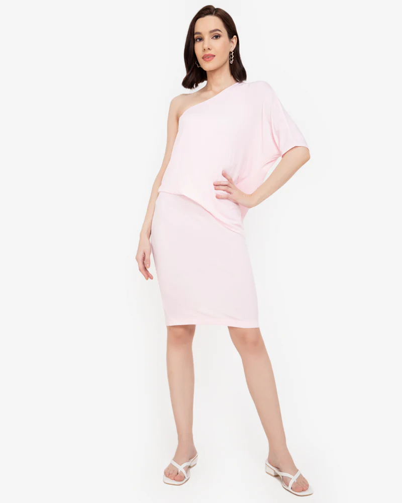 Paulette short dress boasts a structured silhouette that gracefully hugs the frame, complemented by a single shoulder sleeve that elegantly cascades down the hem. Its understated elegance speaks volumes, so let it be the focal point and style it effortlessly.