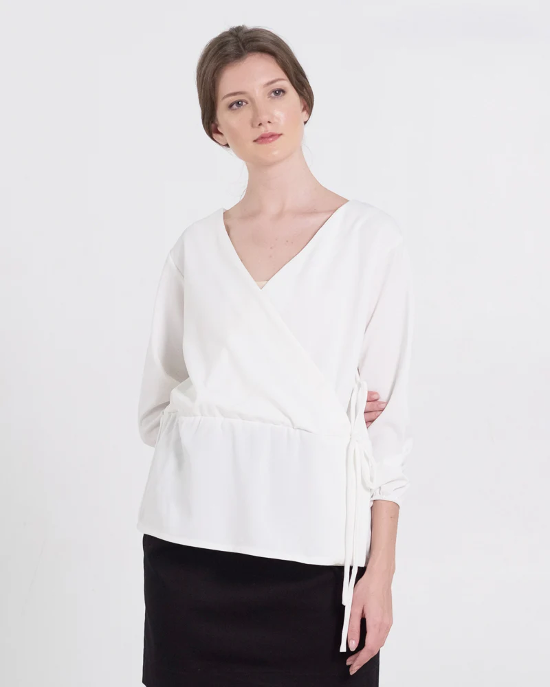 This pseudo wrap top is perfect for days at work. Pair it with a slim skirt or pants to complete the look. On casual days, shorts would be perfect too.